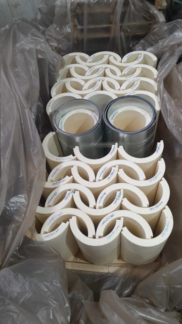 - Скорлупы ППУ выпускаются в заводских условиях с различными толщинами, что позволяет подобрать оптимальную теплоизоляцию для определенного климатического пояса.